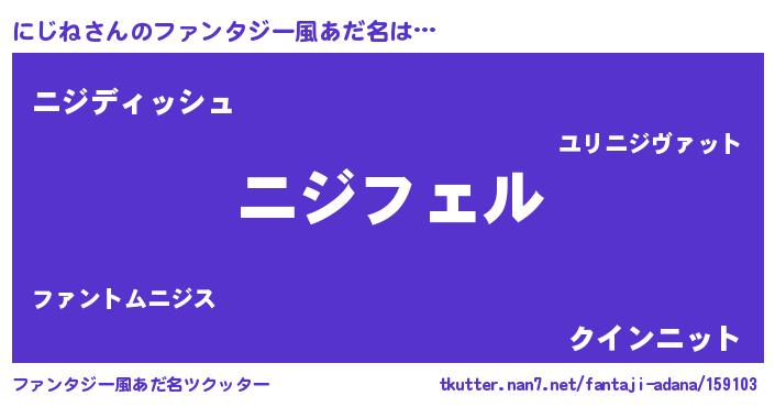 | 男性向けラノベタイトル風あだ名 | 『にじねの憂鬱』『ニジネスレイヤー』 |