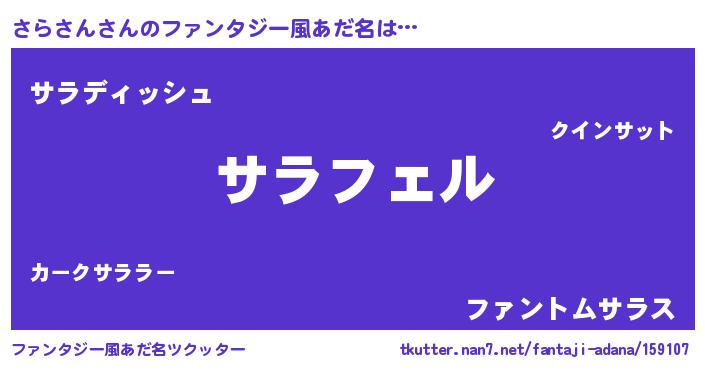 | 男性向けラノベタイトル風あだ名 | 『サラサンアートオンライン』 |