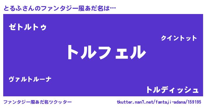 | 意味不明あだ名 | 『ペロリンとるふ』『自称とるふ』 |
