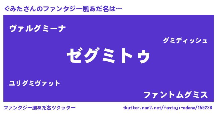 | ポケモン風あだ名 | 『グミゴンZ』『グミセウス』 |