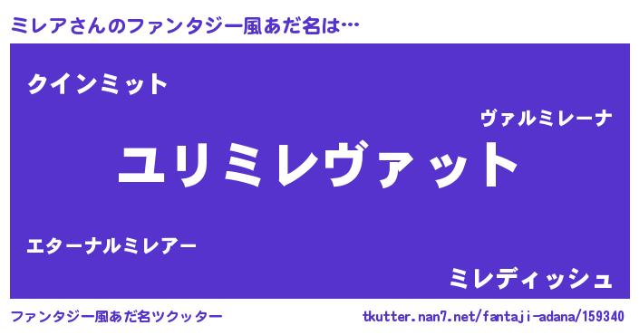 | ヘコむあだ名 | 『ミレア(遠い目)』『牛乳』『ミレを』 |