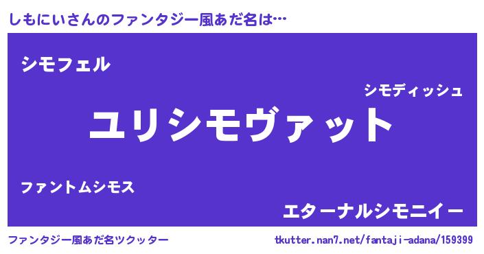 | 男性向けラノベタイトル風あだ名 | 『転生したらしもにいだった件』 |