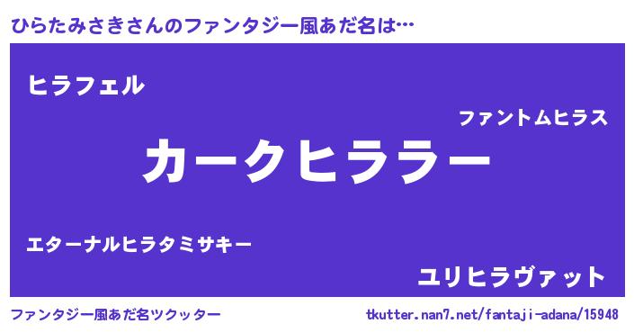 | ヒーロー風カッコイイあだ名 | 『スーパーヒラタミサキ』『天弓騎士ヒラ』 |