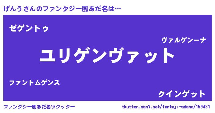 | 男性向けラノベタイトル風あだ名 | 『げんう~年齢イコール彼女いない歴の魔法使い~』 |