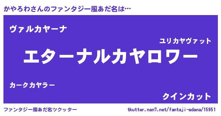 | 女子向けラノベタイトル風あだ名 | 『かやろわ伯爵の花嫁』『かやろわ恋絵巻』 |