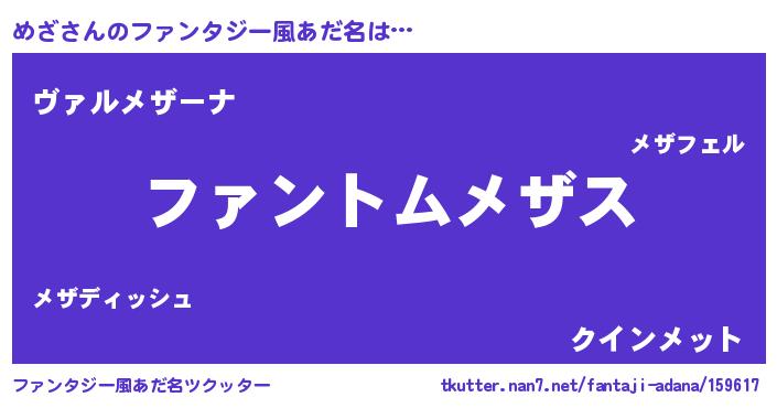 | 男性向けラノベタイトル風あだ名 | 『めざの嫁は女の子じゃないと思った?』 |
