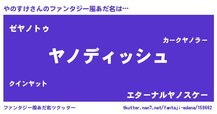 | 男性向けラノベタイトル風あだ名 | 『やのすけという概念が存在しない退屈な世界 』 |