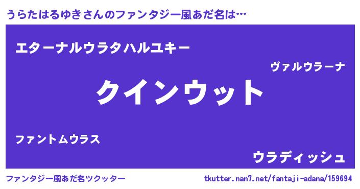 | 男性向けラノベタイトル風あだ名 | 『おまえをオタクにしてやるから、俺をうらたはるゆきにしてくれ! 』 |