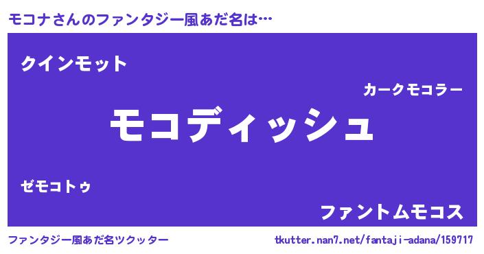 | 男性向けラノベタイトル風あだ名 | 『モコナという概念が存在しない退屈な世界 』 |