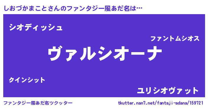 | 男性向けラノベタイトル風あだ名 | 『この素晴らしい世界にしおづかまことを!』 |