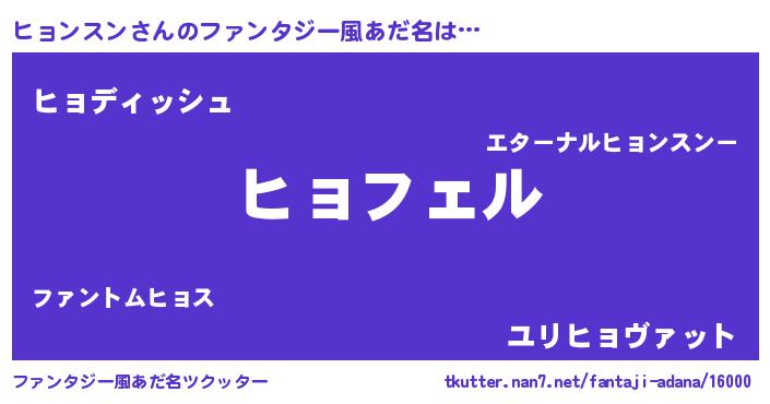 | 男性向けラノベタイトル風あだ名 | 『ヒョンスンアートオンライン』 |