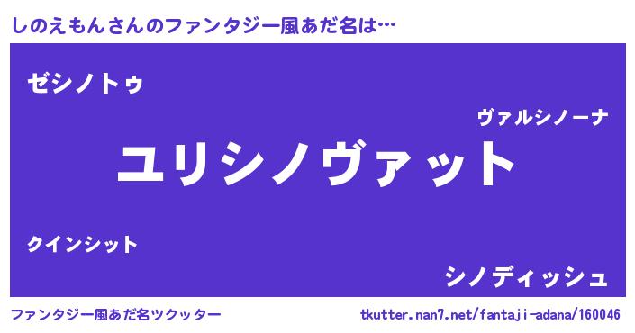 | 男性向けラノベタイトル風あだ名 | 『シノエモンスレイヤー』 |