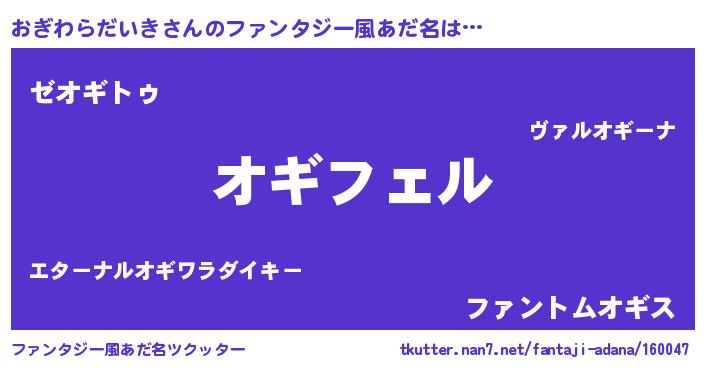 | ヒーロー風カッコイイあだ名 | 『スーパーオギワラダイキ』 |