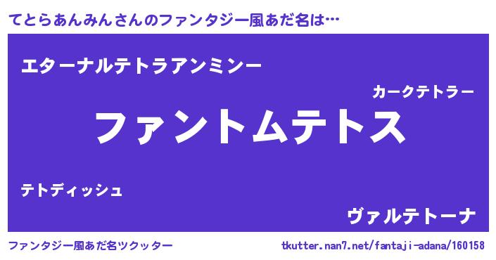 | 女子向けラノベタイトル風あだ名 | 『てとらあんみんの卵を拾いまして』 |
