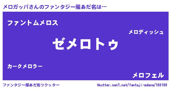 | 意味不明あだ名 | 『自称メロガッパ』『ペロリンメロガッパ』 |