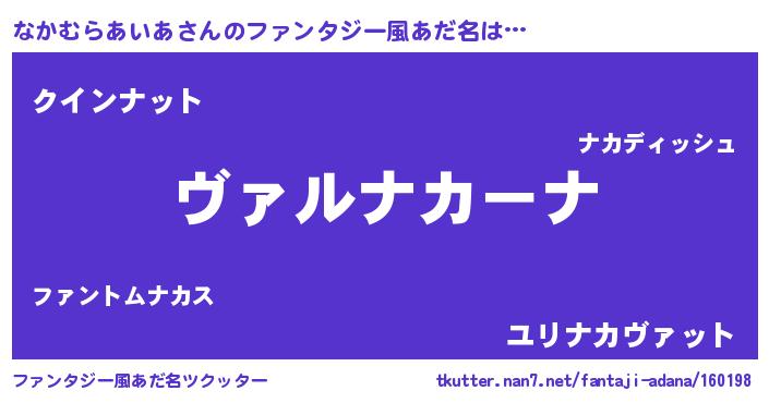 | ヘコむあだ名 | 『なかむらあいあ(笑)』『なかっぺ』 |