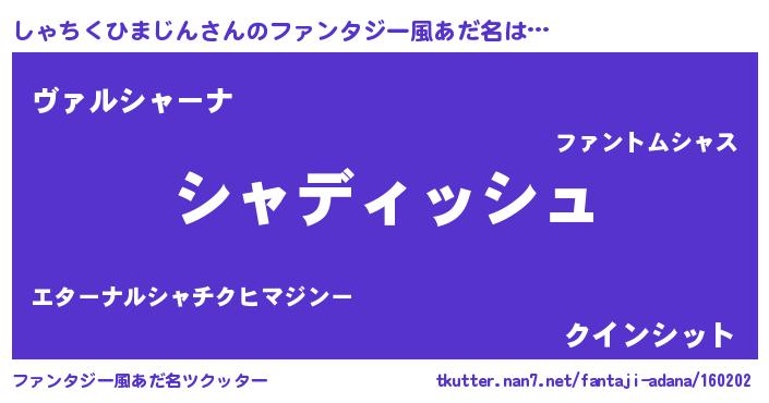 | ヘコむあだ名 | 『しゃちくひまじん(小並感)』『しゃお』 |