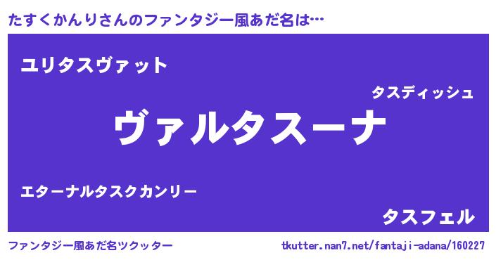 | 男性向けラノベタイトル風あだ名 | 『魔弾の王とたすくかんり』 |