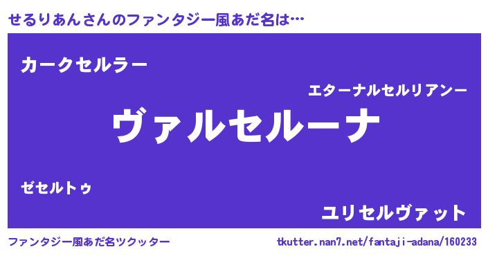| 意味不明あだ名 | 『住所不定無職せるりあん(85歳)』 |