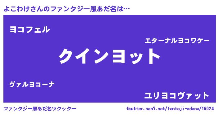 | 女子向けラノベタイトル風あだ名 | 『よこわけ恋絵巻』『よこわけ伯爵の花嫁』 |
