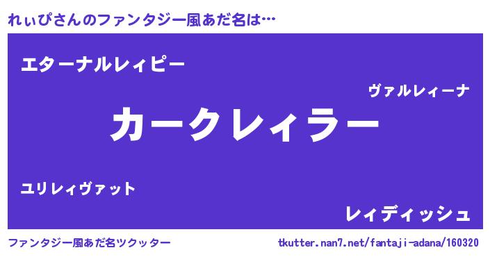 | ヒーロー風カッコイイあだ名 | 『ウルトラれぃぴマン』『ネオレィピ』 |