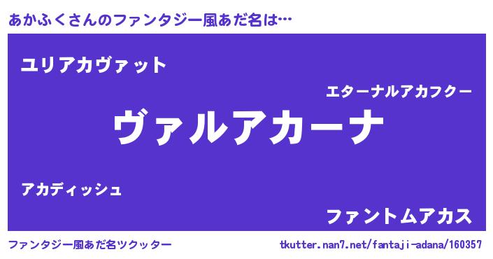 | 男性向けラノベタイトル風あだ名 | 『魔弾の王とあかふく』 |