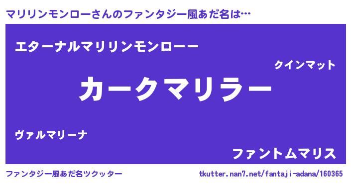 | 男性向けラノベタイトル風あだ名 | 『はたらくマリリンモンローさま!』 |