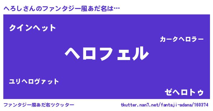 | 男性向けラノベタイトル風あだ名 | 『へろしの憂鬱』『魔法科高校のへろし』 |