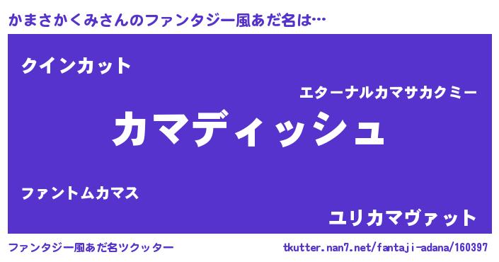 | 意味不明あだ名 | 『永久保存かまさかくみ』 |