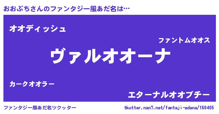 | 女子向けラノベタイトル風あだ名 | 『乙女ゲームの破滅フラグしかない悪役おおぶちに転生してしまった…』 |