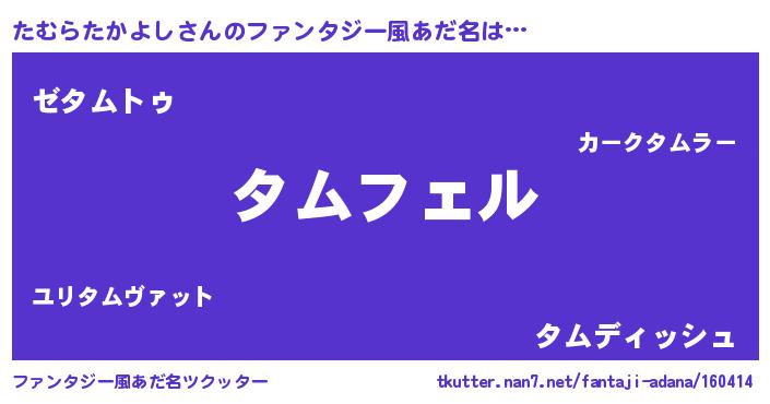 | 女子向けラノベタイトル風あだ名 | 『たむらたかよし姫と円卓の騎士』 |