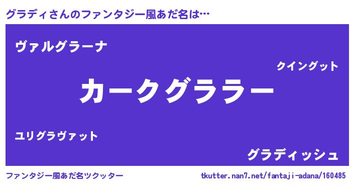 | 男性向けラノベタイトル風あだ名 | 『緋弾のグラディ』『魔弾の王とグラディ』 |