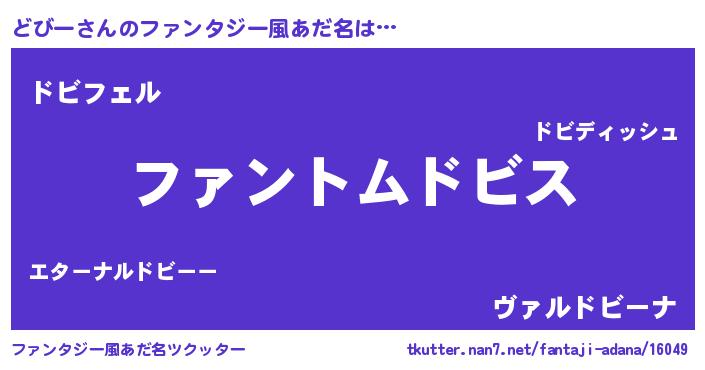 | 男性向けラノベタイトル風あだ名 | 『ダンジョンにどびーを求めるのは間違っているだろうか』 |