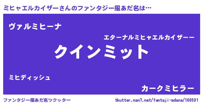 | 男性向けラノベタイトル風あだ名 | 『ノーゲーム・ノーミヒャエルカイザー』 |