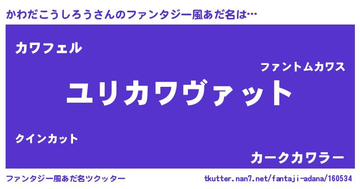 | 男性向けラノベタイトル風あだ名 | 『カワダコウシロウスレイヤー』 |