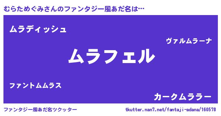 | 男性向けラノベタイトル風あだ名 | 『むらためぐみの憂鬱』 |