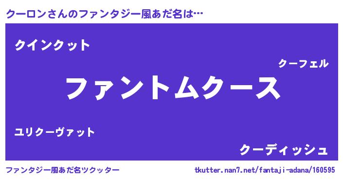 | 男性向けラノベタイトル風あだ名 | 『ダンジョンにクーロンを求めるのは間違っているだろうか』 |