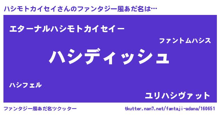 | 意味不明あだ名 | 『永久保存ハシモトカイセイ』 |