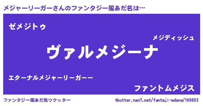 | 男性向けラノベタイトル風あだ名 | 『魔弾の王とメジャーリーガー』 |