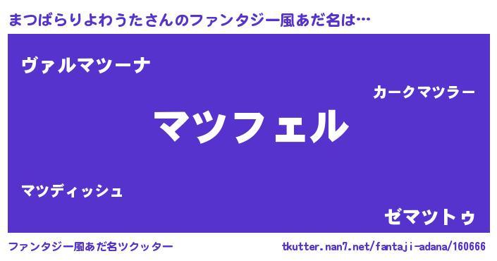| 胡散臭い通販商品みたいなあだ名 | 『モテモテ間違いなしブレスレット…その名も「まつばらりよわうた」』 |