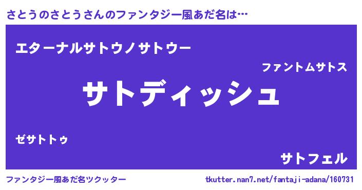 | ヒーロー風カッコイイあだ名 | 『ネオサトウノサトウ』『黄金騎士サト』 |