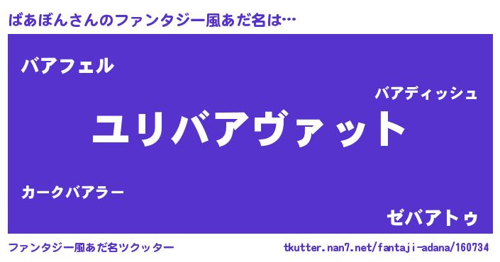 | 男性向けラノベタイトル風あだ名 | 『ばあぼん~年齢イコール彼女いない歴の魔法使い~』 |