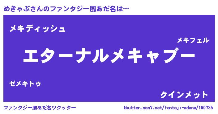 | 欧米人風あだ名 | 『めきゃぶクリステル』 |