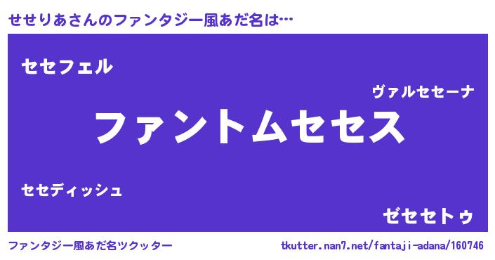 | 意味不明あだ名 | 『とにかく怪しいせせりあ』 |
