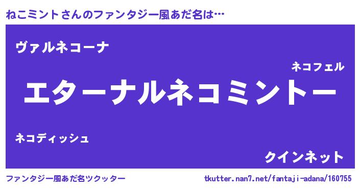 | 欧米人風あだ名 | 『ねこミントクリステル』 |