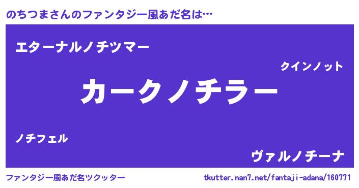 | 意味不明あだ名 | 『のちつまフォーエバー』『自称のちつま』 |