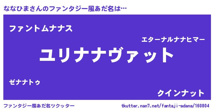 | ポケモン風あだ名 | 『ナナキング』『ヒナナヒマ』 |