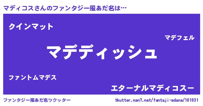 | 意味不明あだ名 | 『永久保存マディコス』 |