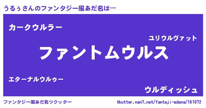 | 意味不明あだ名 | 『とにかく怪しいうるぅ』 |