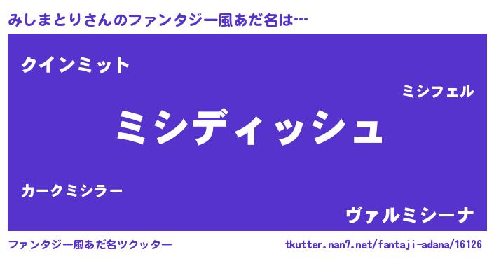 | ヒーロー風カッコイイあだ名 | 『ネオミシマトリ』『仮面ミシダー』 |